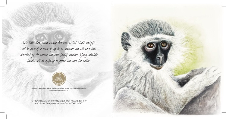 This mischievous Vervet – an Old World monkey – would be a member of troop of up to 50 monkeys who cherish their young. Subadult females particularly, will do anything to get a turn to groom and nurture the babies.